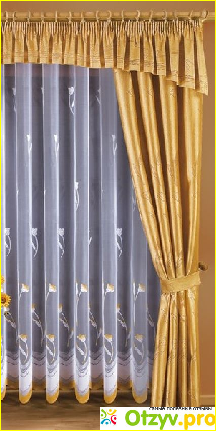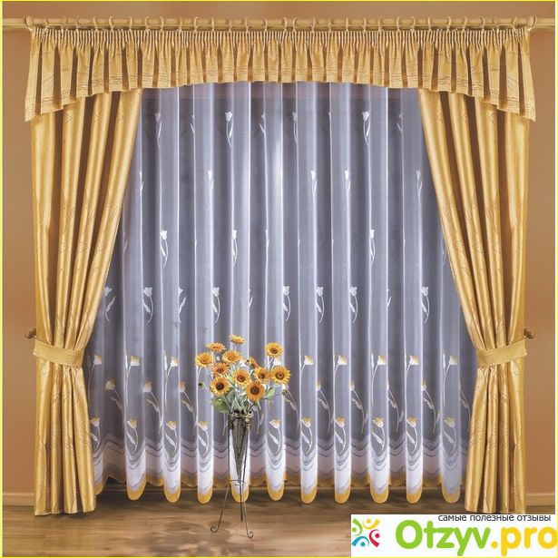 Шторы изготовлены из отличной и очень прочной ткани - полиэстера. В комплект входят портьеры, их две штуки, размер каждой составляет 150*250 сантиметров, ламбрекен имеет такие размеры 500*50 сантиметров, также входит в комплект тюль размером 500*250 сантиметров. В комплекте есть все необходимое, чтобы сразу оформить полностью окно и сделать его завершенным, дополнительно ничего не будет требоваться.