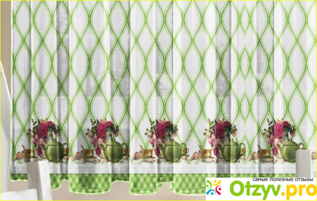 - очень красивый и легкий узор, который будет вам всегда напоминать о теплой весне. Также на шторах есть элементы натюрморта, которые очень красиво смотрятся, а также поможет расширить пространство вашего помещения.
