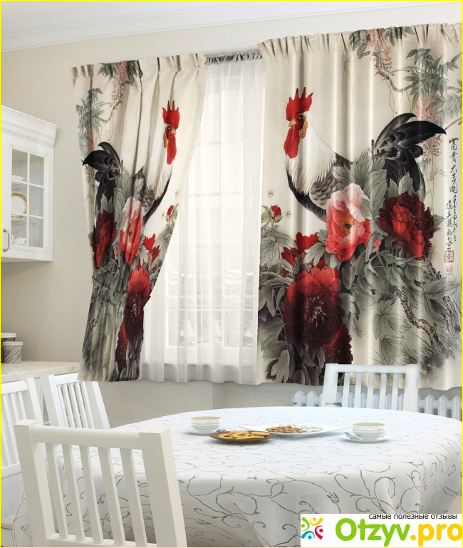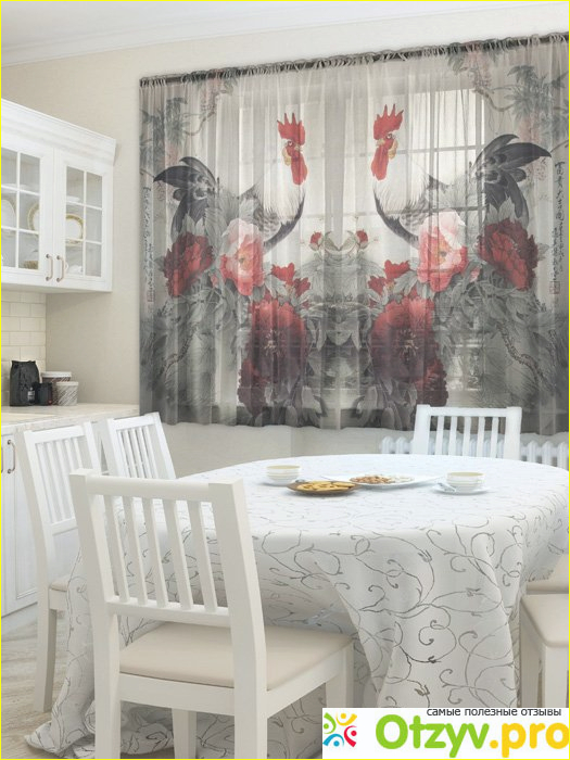Видно, так оно и есть, так как комплект тюля ТамиТекс «Петухи» каким был в день покупки — ярким, четким — таким и остается по сей день.
