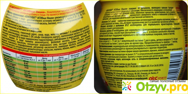 Если вы рассчитываете в этих витаминах встретить минералы, например кальций, на это можете не рассчитывать. Потому, что "активные мишки" исключительно витаминный препарат. Он состоит из десяти самых главных для детского организма витаминов. БАД сделан на сахаре и глюкозе, красители натуральные пищевые, ароматизаторы тоже.