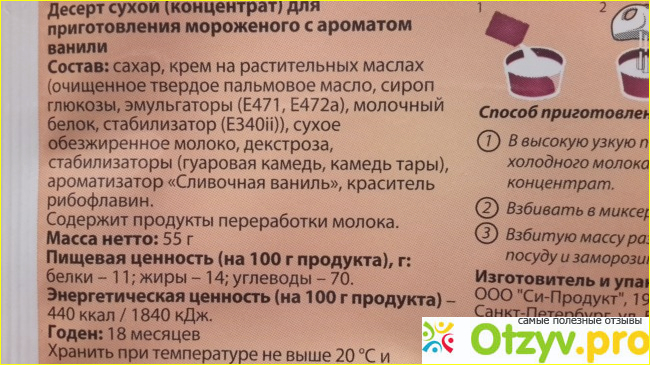 Следуя точно инструкции на пачке, мы сделали мороженное, которое благополучно и замерзло в морозильной камере.