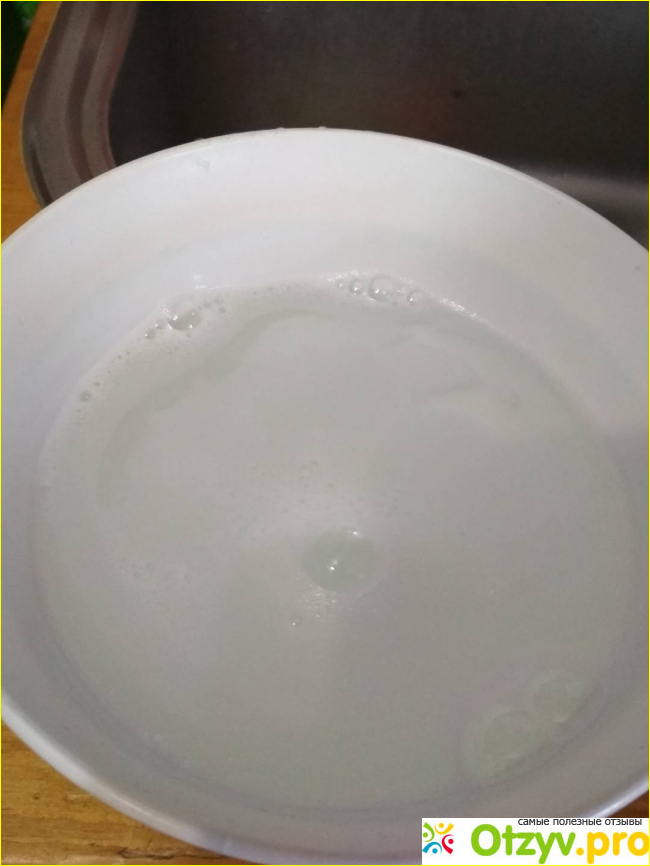 В миску добавила совсем небольшое количество средства.