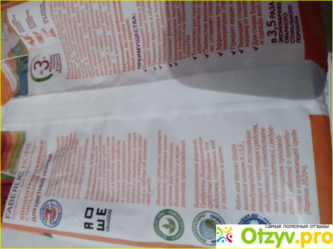 Самое главное для меня это то, что он сохраняет цвет ткани, бережно относится, справляется с трудными пятнами, можно стирать детское белье.