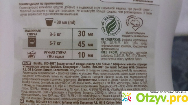 Хочу еще не смотря на все минусы сказать несколько слов о том, какого средство в деле. Да, кондиционер обалденно смягчает вещи! Запах корицы оказался настолько нежным, это меня удивило, я ожидала более резкого запаха. В этом плане претензий нет абсолютно. Вещи мягкие, приятно пахнут! Но... ах, опять это "но" за состав. Да, в средстве не содержится фосфатов, агрессивных пав, силиконов, парабенов, хлора, синтетических красителей и ароматизаторов, это конечно плюс. Но как минимум два компонента могут вызвать сильнейшую аллергию у вас и вашего ребенка!!!Решать конечно вам, но я средство больше не куплю и другим не порекомендую. Будем искать более безопасную (по настоящему!) альтернативу.