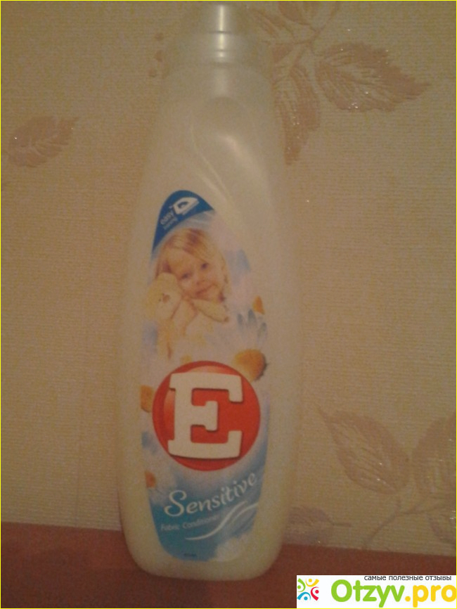 В нашей воде без кондиционера стирать вообще нельзя - все вещи потом очень жесткий на ощуть, а носки так вообще аж стоят, как не стиранные. Так как половина семьи - это дети, в целях экономии я покупаю 1 кондиционер на всю семью. Обычно я беру Ленор Детский, но вчера в магазине была акция и я купила кондиционер "Е Сенсетив" всего за 70 рублей за 1 литр.