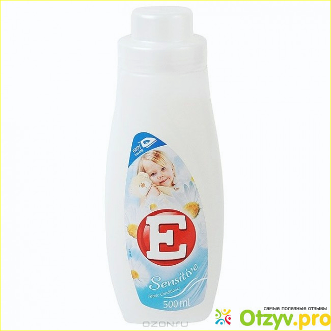 Кондиционер для белья "Е" sensitive "Нежный" пдходит для чувствиельной кожи, не вызывает аллергических реакций, поэтому рекомендован для стирки детского белья.