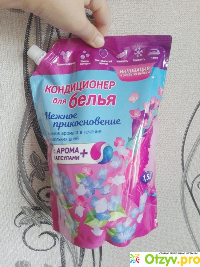 После стирки, я приятного аромата на вещах не заметила, хотя обычно, пока белье развешиваешь, уже пахнет чем - то свежим и приятным, а здесь даже аромата порошка не оказалось, перебил все напрочь этот кондиционер.
