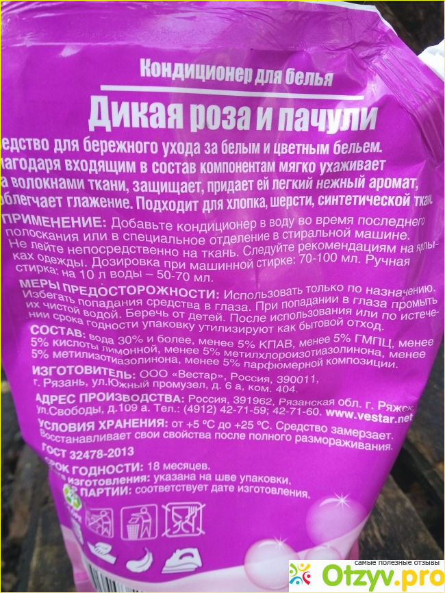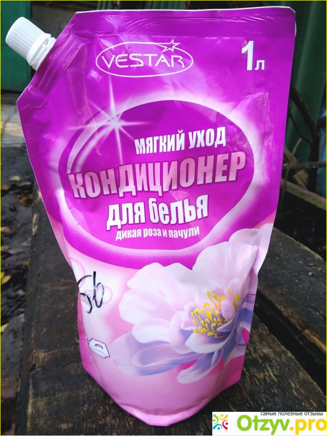 При покупке этого средства привлекло меня две вещи: цена и аромат. Пачули мне нравится, а к розе я, правда, равнодушна. Упаковка литр кондиционера в мягкой (как для кетчупа) бутылке стоил 56 рублей.