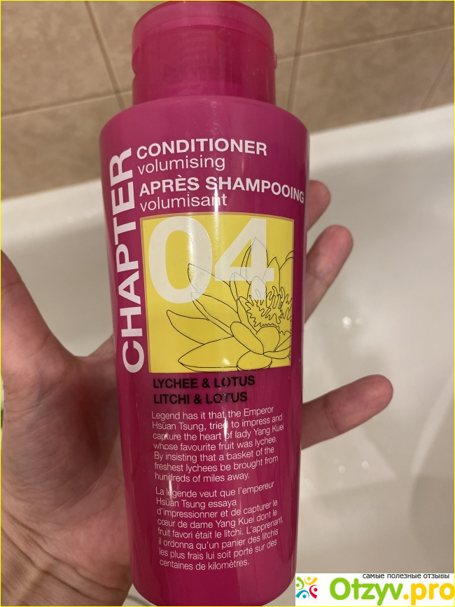 Кондиционер с ароматом личи и лотоса, придающий объем, имеет нежную и легкую текстуру, которая питает и смягчает волосы, восстанавливая здоровый блеск и сияние. Не утяжеляет волосы, помогает расчесать спутанные пряди. Не содержит парабенов, силиконов и красителей.