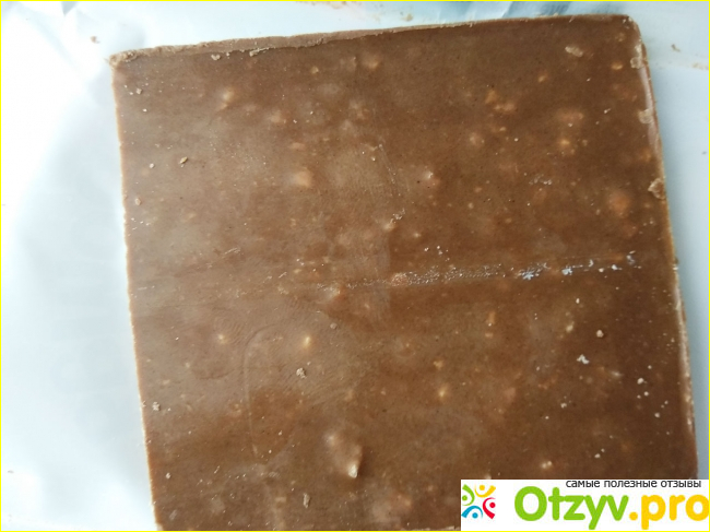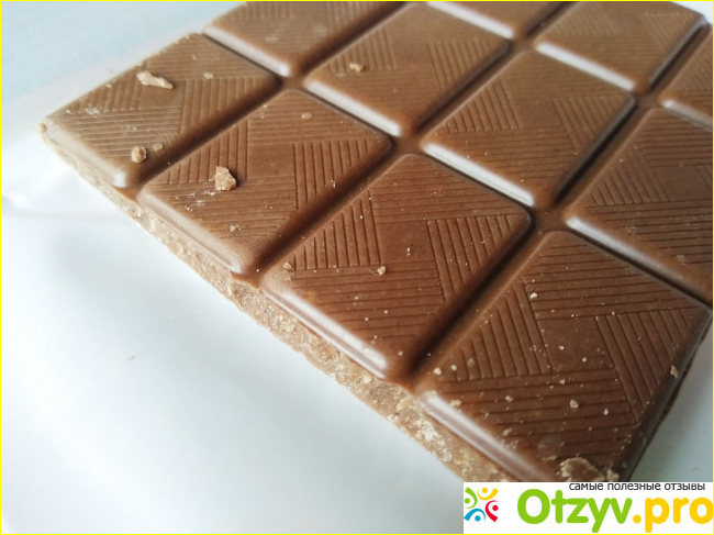 Выяснили, это не шоколад, а сладкая плитка. Она светлая, имеет классические прямоугольники. Помню этот формат и рисунок с детства, но не могу уточнить какой производитель его использовал. Что касательно фишки данной плитки, то есть вафли, то на изломе её не видно, как на фотографии. Но в некоторых местах попадаются крупные кусочки.