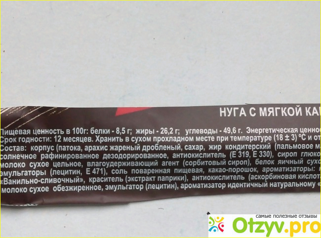 В целом вкус у конфеты не плохой, но не идеальный, бывают и боле вкусные с таким содержанием. Но кто любит нугу, карамель и арахис думаю оценит. Конфета довольно мягкая, легко раскусывается, не очень тягучая, карамель и нуга не липнут к зубам, но конфета немного суховатая.