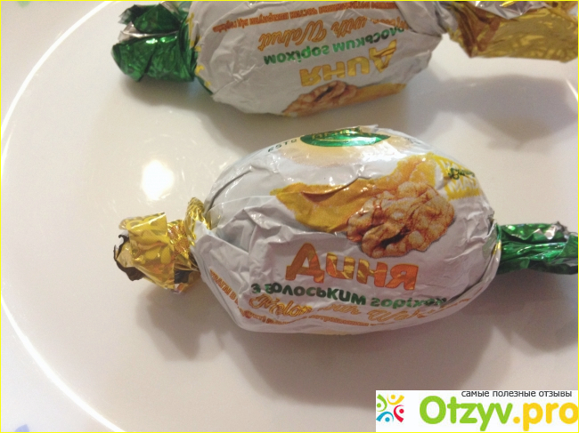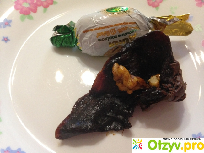 В пробовала "Финик с грецким орехом" - приторно сладкие, и "Инжир с грецким орехом" - инородные включения в виде не съедобных кусочков. По сравнению с этими двумя видами конфет "Дыня с грецким орехом" несравненно получше.