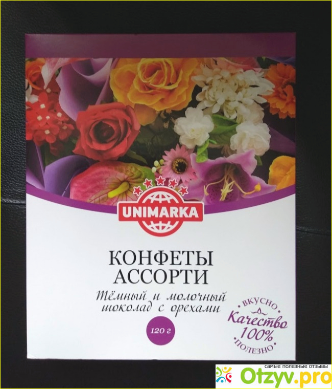 Эту коробку Конфеты ассорти Unimarka темный и молочный шоколад купил мой супруг. Соблазнила смешная цена в 55 рублей. Я как-то сразу подозревала, что за такую цену ничего приличного там нет.