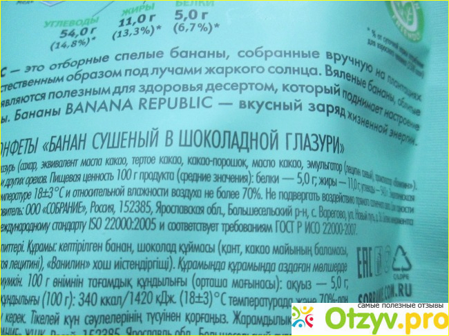 На обратной стороне много интересной информации, а именно - нарисована лапа бананов и дано описание их полезных свойств, включая микроэлементы и витамины. Я знал, что бананы полезные, но чтобы настолько! Это ново и полезно. Впрочем, бананы почти каждый день ем.