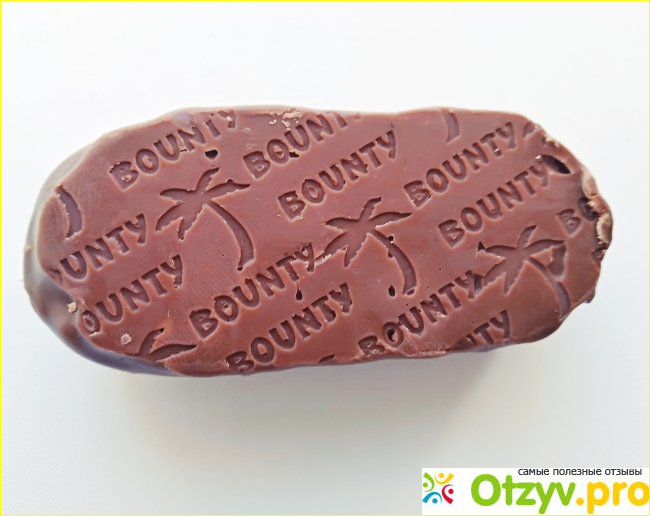 Конфета Bounty состоит из молочного шоколада и сочной кокосовой начинки. В конфете всё точно так же, как и во всём известном батончике, и вкус точно такой же. Начинки много и она очень сочная, но и очень сладкая.