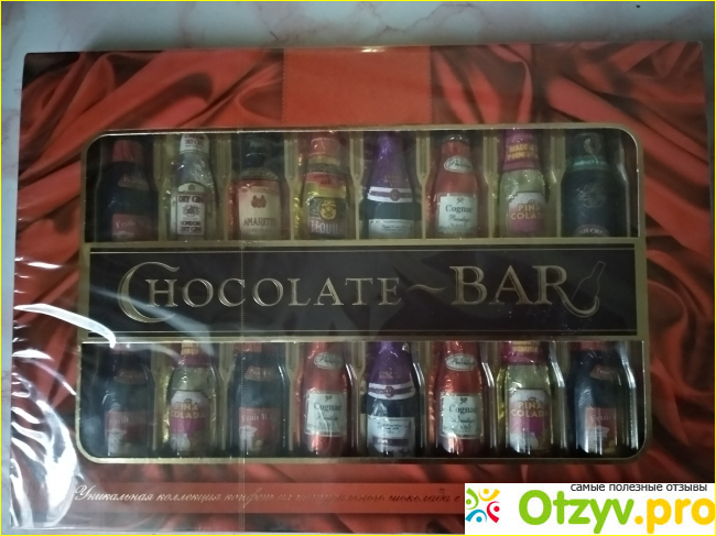 Развернула фольгу и начала пробовать шоколадный десерт. Не ожидала такого разочарования. Шоколад, точнее шоколадная глазурь не вкусная, напоминает пластилиновую сладкую плитку. Толстый слой невкусной глазури это ещё не всё разочарование. Начинка оказалась тоже не самой лучшей начинкой, которую я пробовала. Цвет начинки разный в разных бутылочках, а вкус практически идентичный у всех. Вкус приторной помадки с лёгким оттенком спирта.