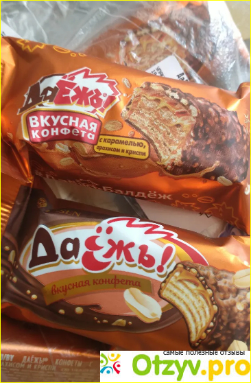 Разновидностей конфет ДаЁжь две разновидностей: голубая-сливки, карамель криспи. Я купила в коричневой упаковке с карамелью, криспи и арахисом. Есть на вес или в упаковках.