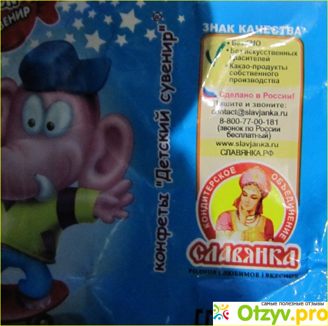 Мы уже много лет покупаем конфеты "Детский сувенир" своему ребенку и нас радует, что ассортимент этих конфет растет (постоянно добавляются новые фигурки животных), меняется и дизайн упаковки, становясь более ярким и привлекательным. С годами вкус конфет не становится хуже, как это бывает у некоторых производителей. "Славянка" всегда на высоте и не перестает удивлять. Она с достоинством оправдывает свой слоган: "Славянка" - вкусное детство".