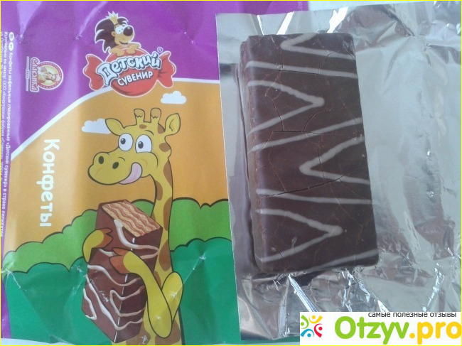 Сверху конфета покрыта шоколадной глазурью, вкус у глазури не натуральный, но вкусный.