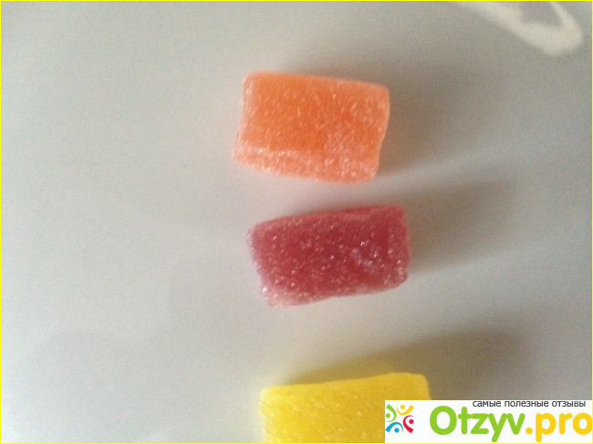 Конфеты вкусные, совершенно не сладкие, а с ощутимой кислинкой. По виду они разноцветные, а по вкусу очень похожи. По крайней мере я не смогла выделить какого то определенного вкуса. Но абсолютно все мне нравятся, вне зависимости от цвета. конфеты не покрыты сверху большим слоем сахара, как обычно покрывают мармелад.