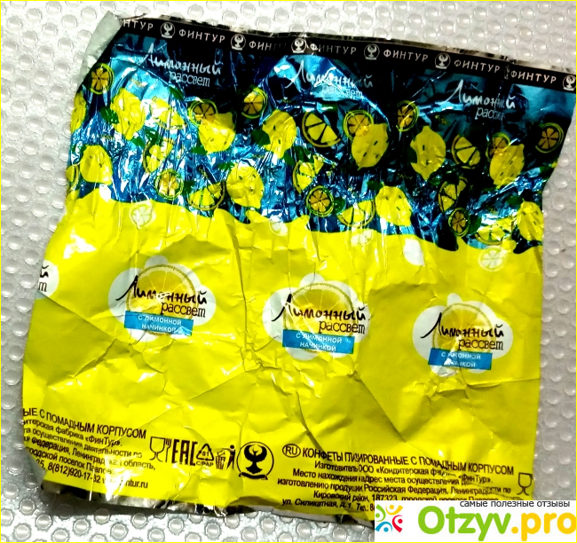 Конфета покрыта кондитерской глазурью. В составе есть сыворотка молочная, растительный жир, сахар, патока. А лимонный вкус за счет чего? Лимона в составе нет. Но есть регулятор кислотности.