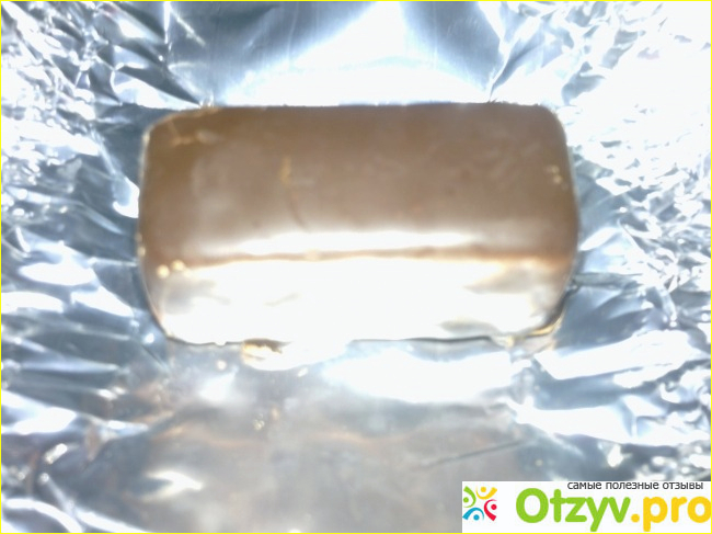 Изготовителем заявлено, что конфета глазирована кондитерской глазурью. Так вот, очень хорошего качества глазурь. Коричневый, матовый, ровный цвет, шоколадный запах не уступают по внешним признакам качеству шоколадной глазури. Корпус конфеты помадно-шоколадный со вкусом крем-брюле, мягкой однородной консистенции.