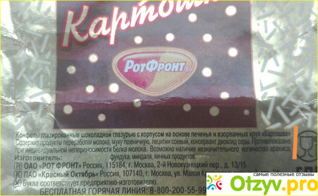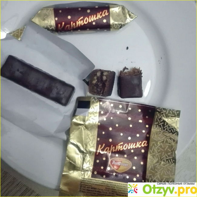 Угораздило меня увидеть эти конфеты в магазине "Аленка". Во-первых, на название купилась: очень уважаю одноименное пирожное еще с детских времен. Во-вторых, на них была акция "-20 %" (в "Аленке" систематически скидки дают на довольно большой список кондитерских товаров); а Ротфронтовская "Картошка" и по полной стоимости дешевая – порядка 240 рэ, по "желтому" ценнику так вообще около 190 рублей.