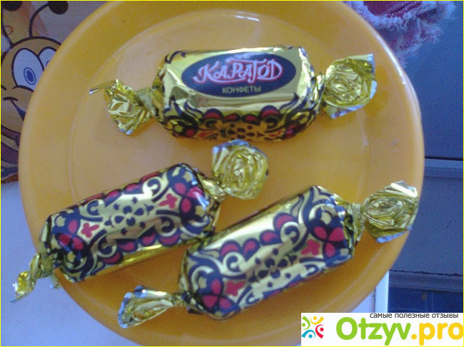 Правда там только один сорт "Карагода" всегда продается - с пралиновой начинкой, в желтенькой оберточке, очень яркой, выполненной в стиле старинных русских узоров. У меня сыну очень нравятся эти конфеты, когда выбираем что-то к чаю, о пальчиком показывает на них, обертка видимо яркая привлекает.