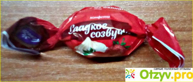 Называются "Сладкое созвучие", обертка хрустящая, а внутри еще тонкая фольга. Клубнички симпатичные на фантике. Вкус клубники со сливками.