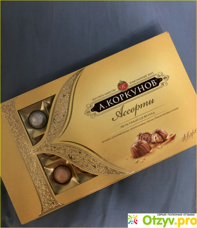 Перед новым годом "Коркунов" продавали по акции, за 189 рублей. У этих конфет очень "презентабельный" вид, поэтому их часто покупают в качестве подарка и гостинца. Я тоже, например, в этом году дарила данные конфеты своим коллегам. Мне нравится, что в коробке есть конфеты разных вкусов, мне нравится, вариант с цельным лесным орехом. Конфеты стандартного размера. Каждая из них дополнительно упакована, в красивую плотную бумагу. Конфеты "Коркунов" есть как с горьким шоколадом, так и с молочным. Также насколько я знаю в продаже имеются конфеты в темном и молочном шоколаде. Но такую пачку я никогда не покупала и не пробовала. В упаковке бардового цвета конфеты сделаны из горького шоколада, в светло бежевой коробке удачно расположились конфеты из молочного шоколада. Лично я больше предпочитаю второй вариант. Такие конфеты "Ассорти" по душе многим моим близким. Да и цена довольно адекватная.