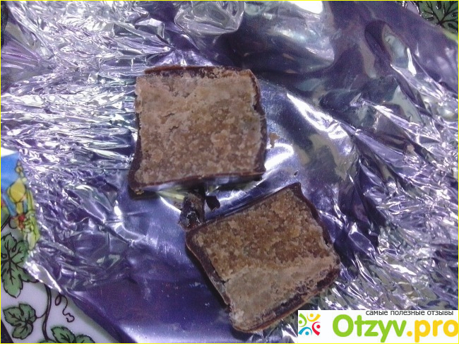 Начинка плотная, конфета не очень твёрдая, слой глазури не толстый.