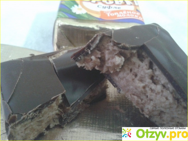 Толстый шоколадный слой кондитерской глазури покрывает наше замечательное, свежайшее суфле, нежное, очень воздушное, которое тает во рту при откусывании. Вкус топленого молока у суфле ощущается хорошо. Думаю, что многим такие конфеты понравятся.