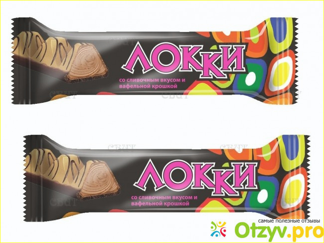 Конфеты крупные, упакованы конвертиком, как все батончики. Потом уже посмотрела в интернете, что Локки бывают с разными начинками. У меня со сливочным вкусом и вафельной крошкой. Вот так они выглядят.