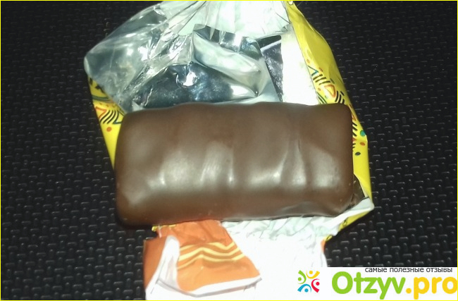 А когда я откусила и разжевала, то поняла, что купила не зря. Очень вкусные конфеты оказались внутри. Глазурь-то обычная, нетолстым слоем, не очень и шоколадная, но тоже приличная, не крошится и в руках не тает. А вот начинка оказалась просто отличная. Состава на фантике нет, поэтому точно не могу сказать, что там. Но по ощущению или вафельная крошка, или кокос, а может то и другое. И воздушные пузырьки. И все это хрустит. Белый наполнитель не приторно сладкий, а в самый раз. Не тягучий и не пластилиновый, как иногда бывает у дешевых конфет, а рассыпчатый. Разжуешь - тает во рту.