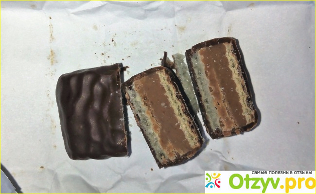 Под глазурью сразу два верхних слоя, с двух сторон, вафельные прослойки. Вафли придают хруст конфетам.