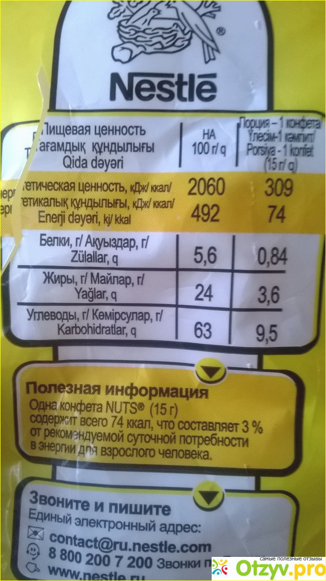 Когда прочитала состав на задней стороне, то немножко разочаровалась, но не сильно. Оказалось в этих конфетах дробленный орех, а не цельный.