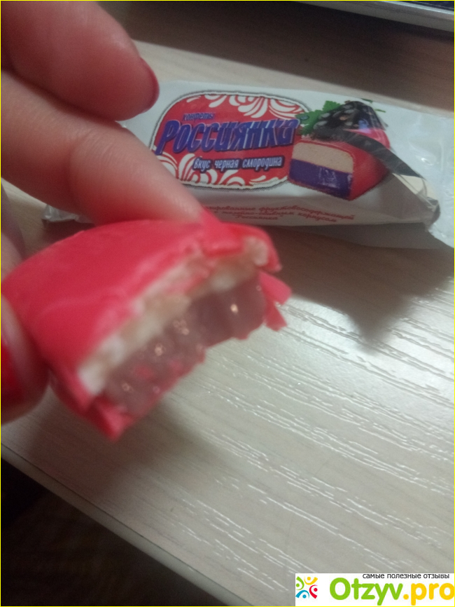Однако вкус могу оценить на твердую четверку. Конфета при надкусывании не сильно ломкая, ее удобно кушать и также можно угостить других людей. Уверена, что цвет сильно впечатлит деток и женский пол. Мне конфета по вкусу сильно понравилась, а бал снизила только за цвет начинки, который блеклый и не такой, как на картинке. Вообще добавка ягоды черной смородины должна иметь темный цвет, а тут он блеклый и складывается впечатления, что с добавками и примесями.