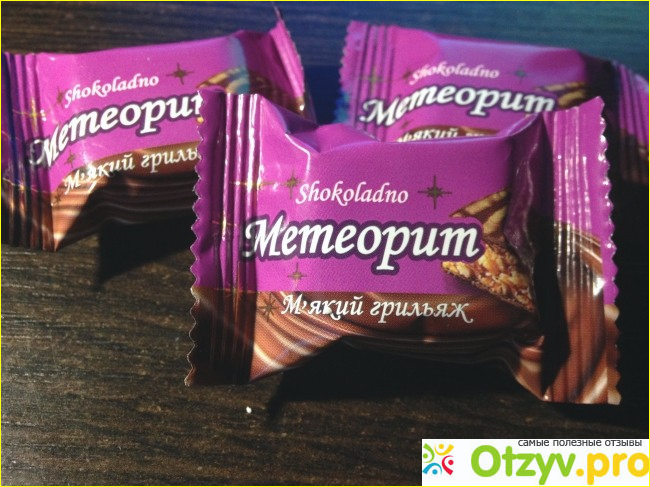 Классический "Метеорит" это сочетание орехов со сливочным маслом и медом. Здесь же даже не могу сказать что именно "намешано", конфеты мягкие, это верно указано на фантике. Я ощутила по вкусу только арахис. Так как он не рассыпается, то, значит есть и карамель, но я ее не ощутила совершенно. Арахис сырой. В целом конфеты не плохие и порекомендовать я их могу, но ожидать яркого и запоминающегося вкуса, не стоит.