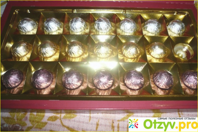 Такие конфеты бывают разного ассортимента. Здесь подбор очень хороший. Шоколад темный и молочный. Разные начинки. Вес 192 грамма. Количество конфет - 21 штучка. В гнездах на золотой подложке 3 вида конфет. Каждый вид упакован в фольгу своего цвета. Смотрится красиво и основательно.