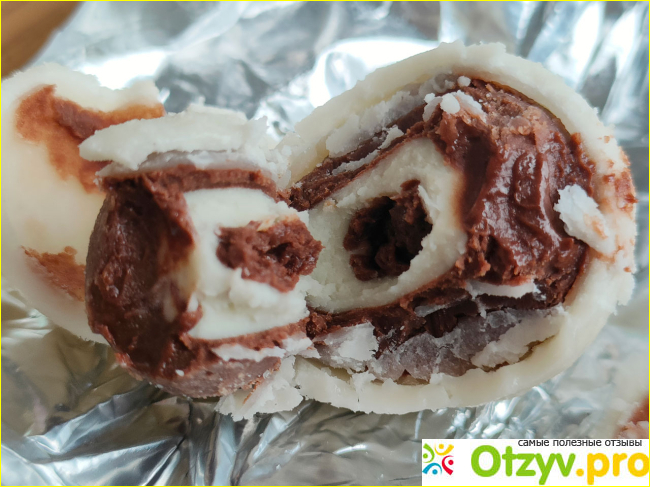 Затем идет слой шоколадной пасты, белой молочной пасты и снова коричневое внутри.