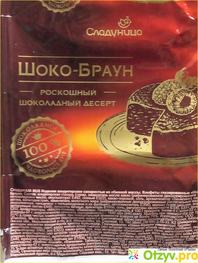 Но самое главное это были самые дешёвые конфеты на прилавке, тут я уже просто не смогла удержаться чтобы не приобрести, очень захотелось попробовать. Тем более на обёртке такой красивый шоколадный десерт и производитель обещает 100 % шоколадное удовольствие, то что я люблю.
