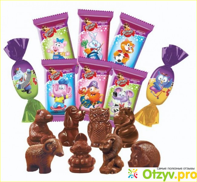 Эти конфеты были в шоколадных новогодних наборах, но я с ними знакома где-то с 2013-го года. Думаю, что они так называются из-за формы зверей, которую они представляют. Очень сладкий шоколад, толщина стенки около 3 мм.