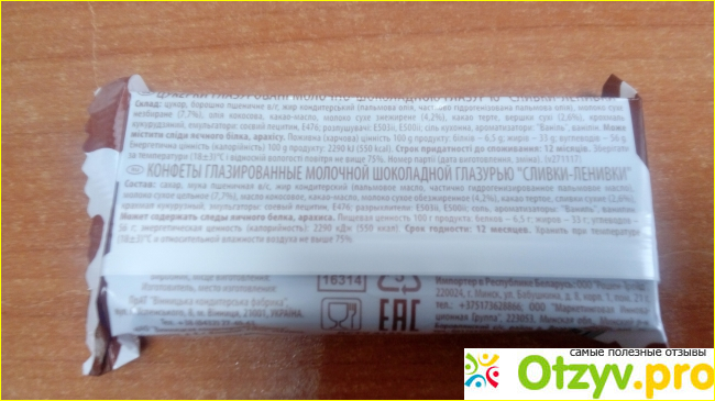Такде та упаковке можно найти информацию о производителе и энергетическую ценность конфет.
