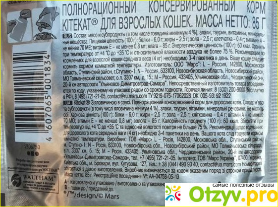 Я очень была довольна действием этого корма, а раньше сомневалась, начитавшись информации на просторах интернета. Теперь у нашего кота Kitekat любимое лакомство, особенно предпочитает со вкусом говядины или курицы, с кроликом и рыбой ему не нравится. Корм, действительно стоящий, в удобной упаковке, по вполне приемлемой цене и заслуживает рекомендаций. Побалуйте своих четвероногих, им обязательно понравится.