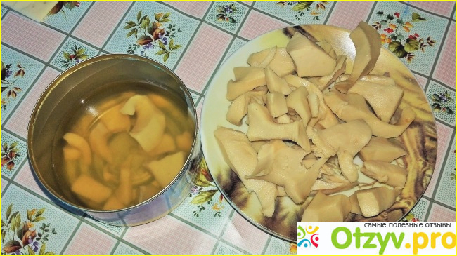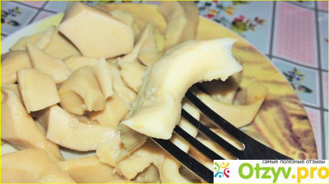 Данный морепродукт обожаю есть просто без заморочек в вареном виде. У данного существа отсутствуют кости. Короче, содержимое банки спокойно могу уплести за один обед. Но, как видите, оно тут было слишком крупным. Поэтому кусочки вышли реально внушающими.