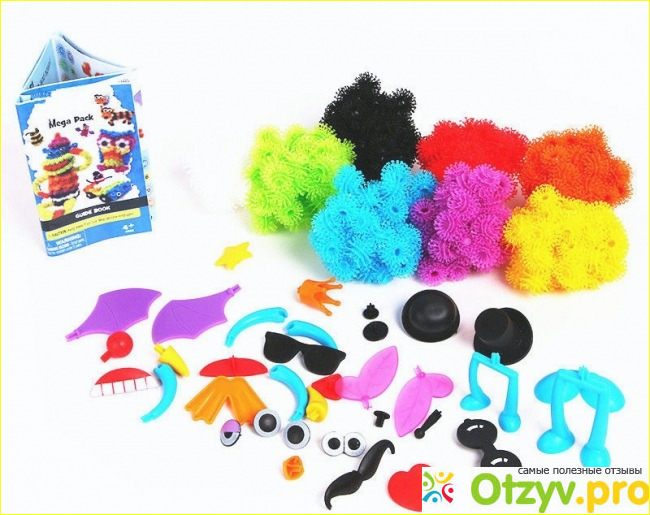 Продавцом-консультантом оказался очень приятный молодой человек, который действительно разбирался в своем деле. Выслушав нашу проблему, молодой человек сразу преложил нам альтернативный вариант, который подойдет и девочке, и мальчику. Продавец предложил нам приобрести конструктор-липучку "Вunchems". Это не какой-то там знакомый нам с детства обычный конструктор. Нет! Я такого прежде еще никогда не видела! "Вunchems" представлял собой набор из трехсот семидесяти разноцветных шариков, которые можно было слепливать между собой по принципу репейника. Они были разных цветов (пятьдесят красных шариков, пятьдесят фиолетовых, пятьдесят оранжевых, пятьдесят синих, двадцать белых, пятьдесят черных, пятьдесят зеленых и пятьдесят желтых шариков). Кроме того, в комплекте шло тридцать шесть аксессуаров для "оживления" созданных детьми фигурок (пластмассовые носы, руки, ноги, глаза, рты, усы, очки и т. д.). А также шла инструкция с картинками посозданию пятнадцати разнообразных фигурок. Но это для тренировки, дальше детки и сами могли проявлять свою фантазию и создавать любые фигурки, на которые только воображения хватит. Все это было красочно упаковано в большой футляр в виде красочного чемоданчика. Мы поняли, что дети будут в восторге от подобного подарка, так что купили им по одному такому набору.