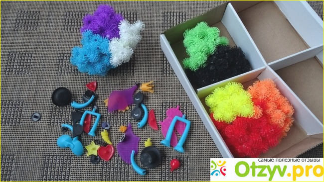Помню, как еще в детстве мы с ними играли, пытались делать различных животных, цепляли себе на одежду. А вот, если они попадали в волосы, то было очень большой проблемой, чтобы их достать и приходилось состригать волосы. То же самое и с bunchems, можно из него делать все что угодно, но только нужно с осторожностью играть и не бросать их в волосы.