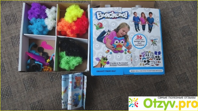 Конструктор bunchems представляет собой маленькие круглые липучки, которые хорошо цепляются между собой. Если вы видели такое растение, как репейник, то видели, наверняка его колючки, с ними еще любят играть дети. И детали конструктора очень похожи на эти колючки и также они присоединяются.