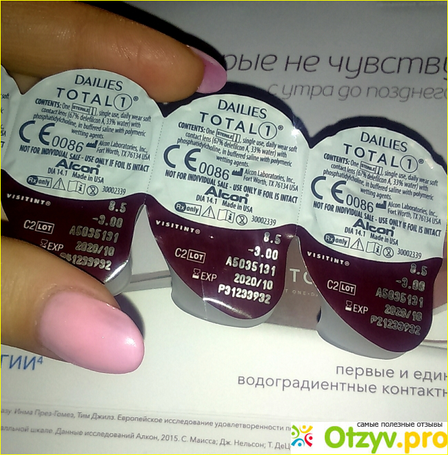 Линзы Alkon Dailies Total 1 сделали зрение четким, потому что мне дали линзы с нужными диоптриями (-3).