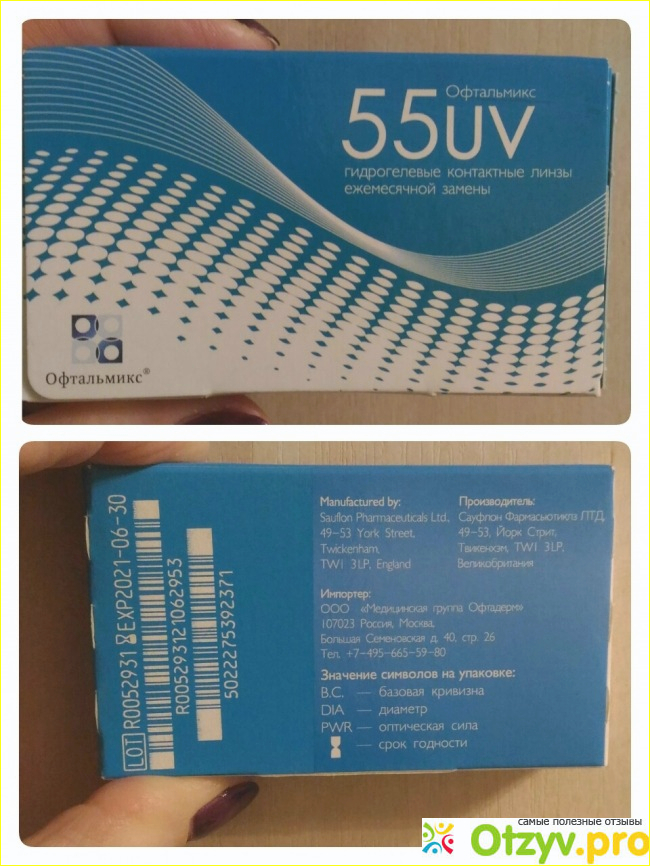 Таким образом я решила купить себе линзы. Офтальмолог рекомендовал мне именно Офтальмикс 55UV. Тогда для меня эти цифры ничего не значили, пока я не стала их носить. Оказалось что цифра 55 означает увлажнённость и чем выше эта цифра тем комфортнее глазу. У них есть ультрафиолетовая защита, на подобие солнечных очков.
